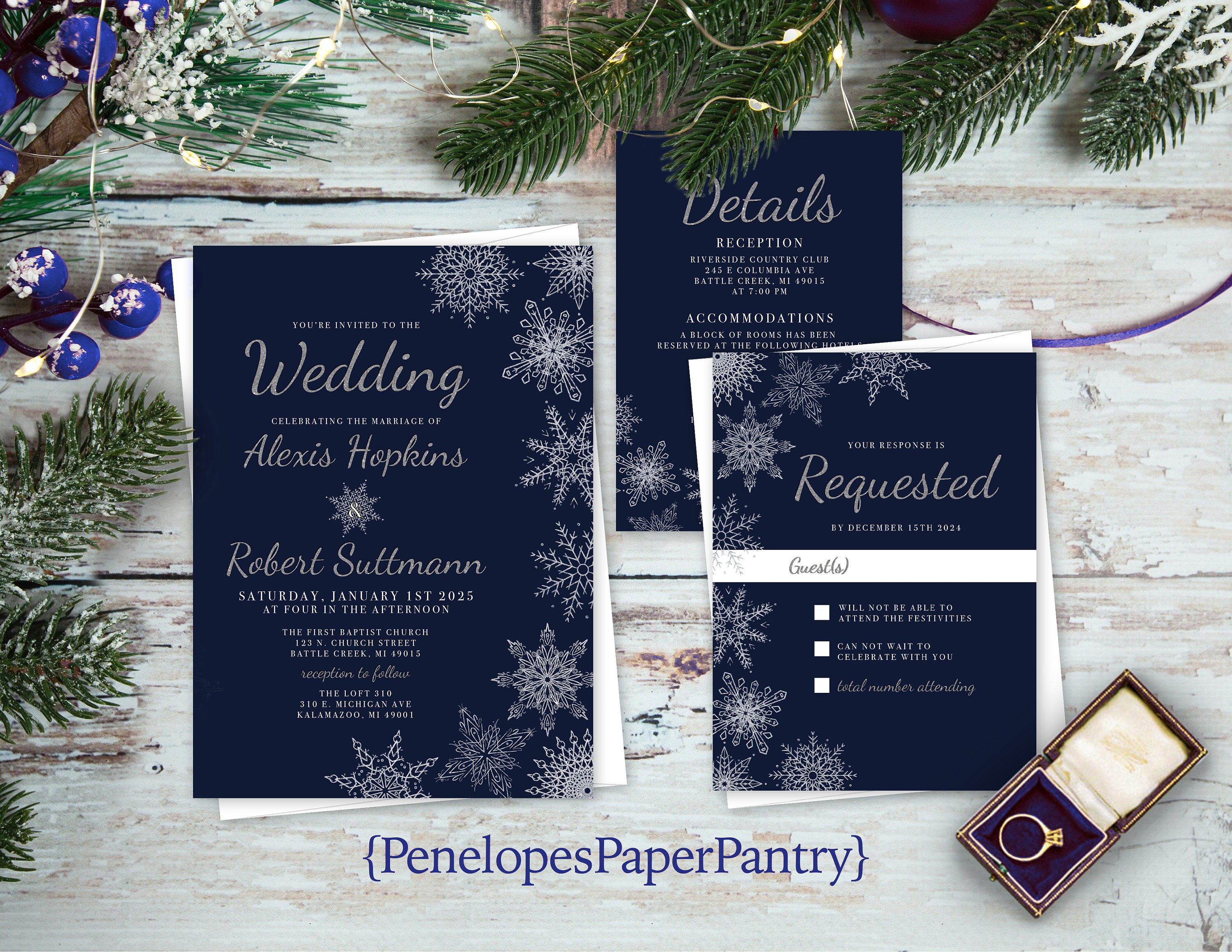 Source : www.wndu.comElegant Navy Winter Wedding Invitation,navy Blue,silver,snowflakes
